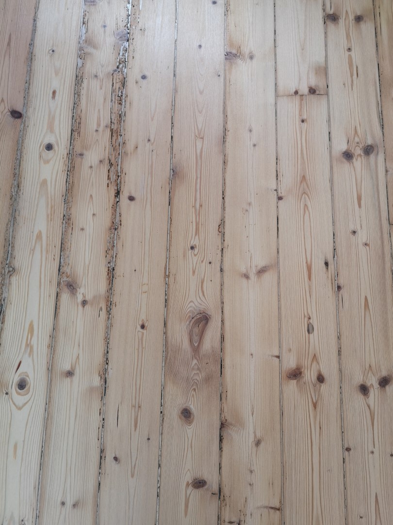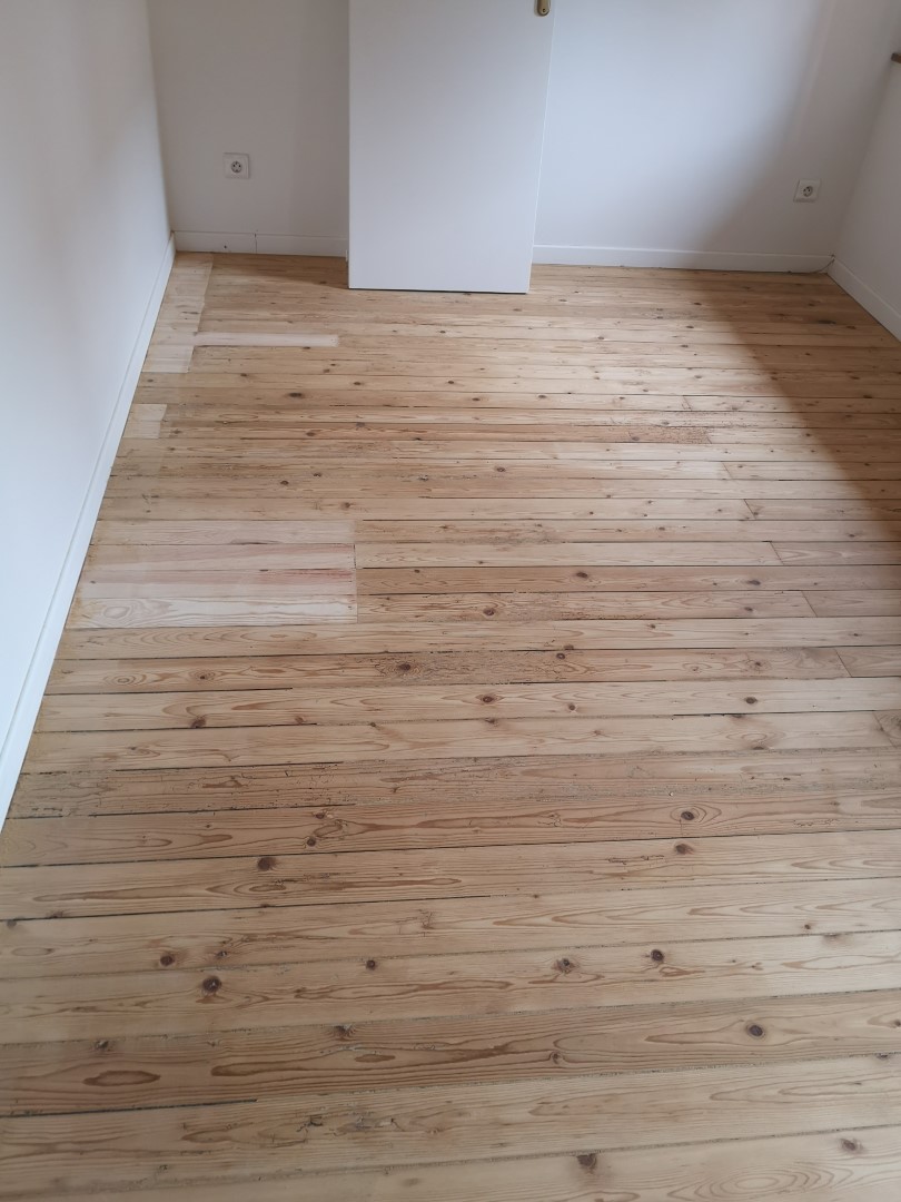 Ponçage et vitrification effet brut (combles aménagées dans un corps de ferme)