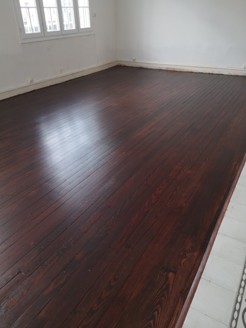 Ponçage d'un parquet en Pichpin , une essence de bois trés courante à Toulouse