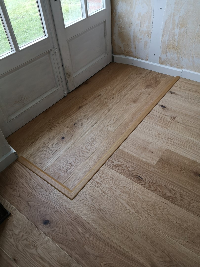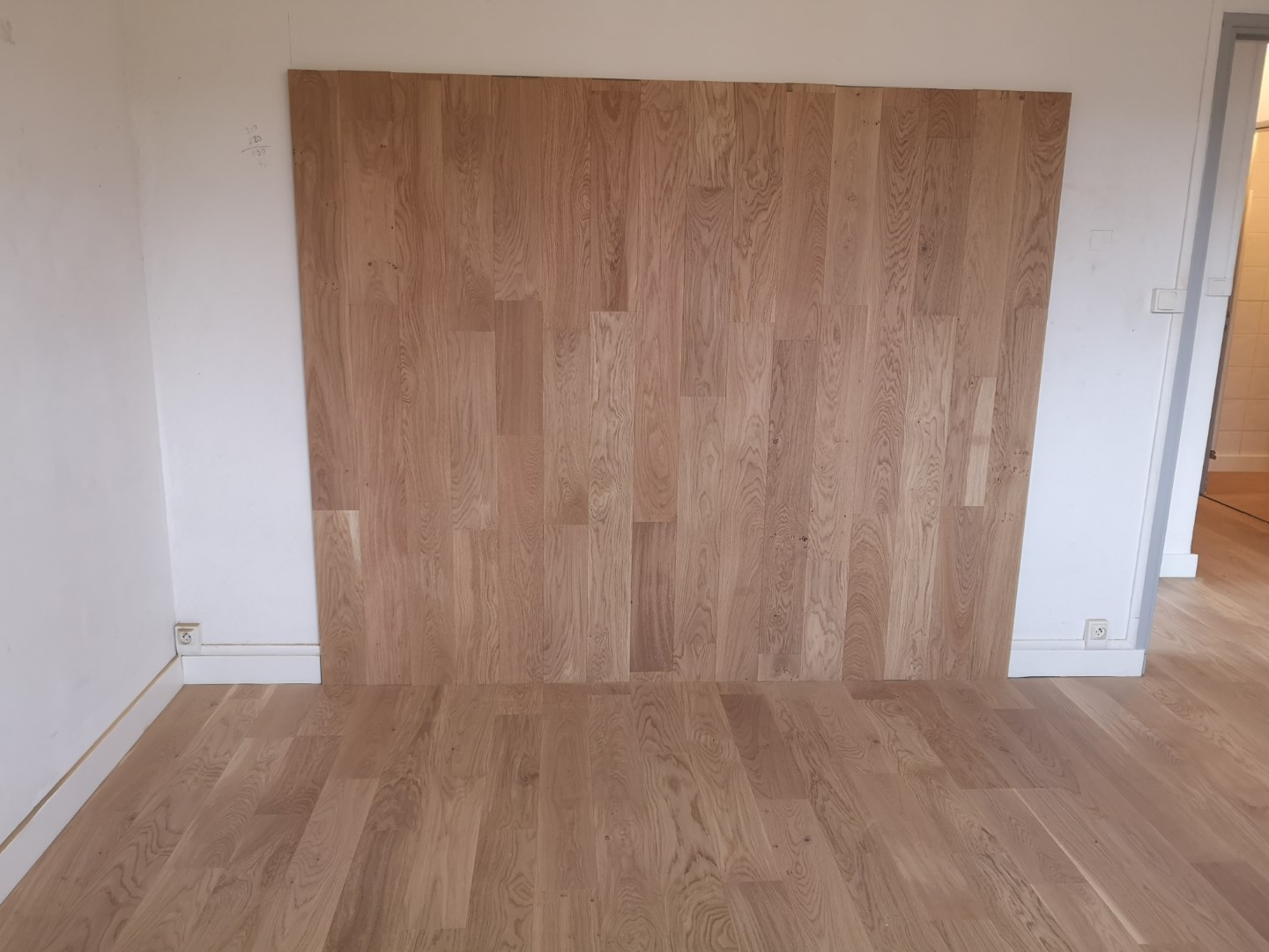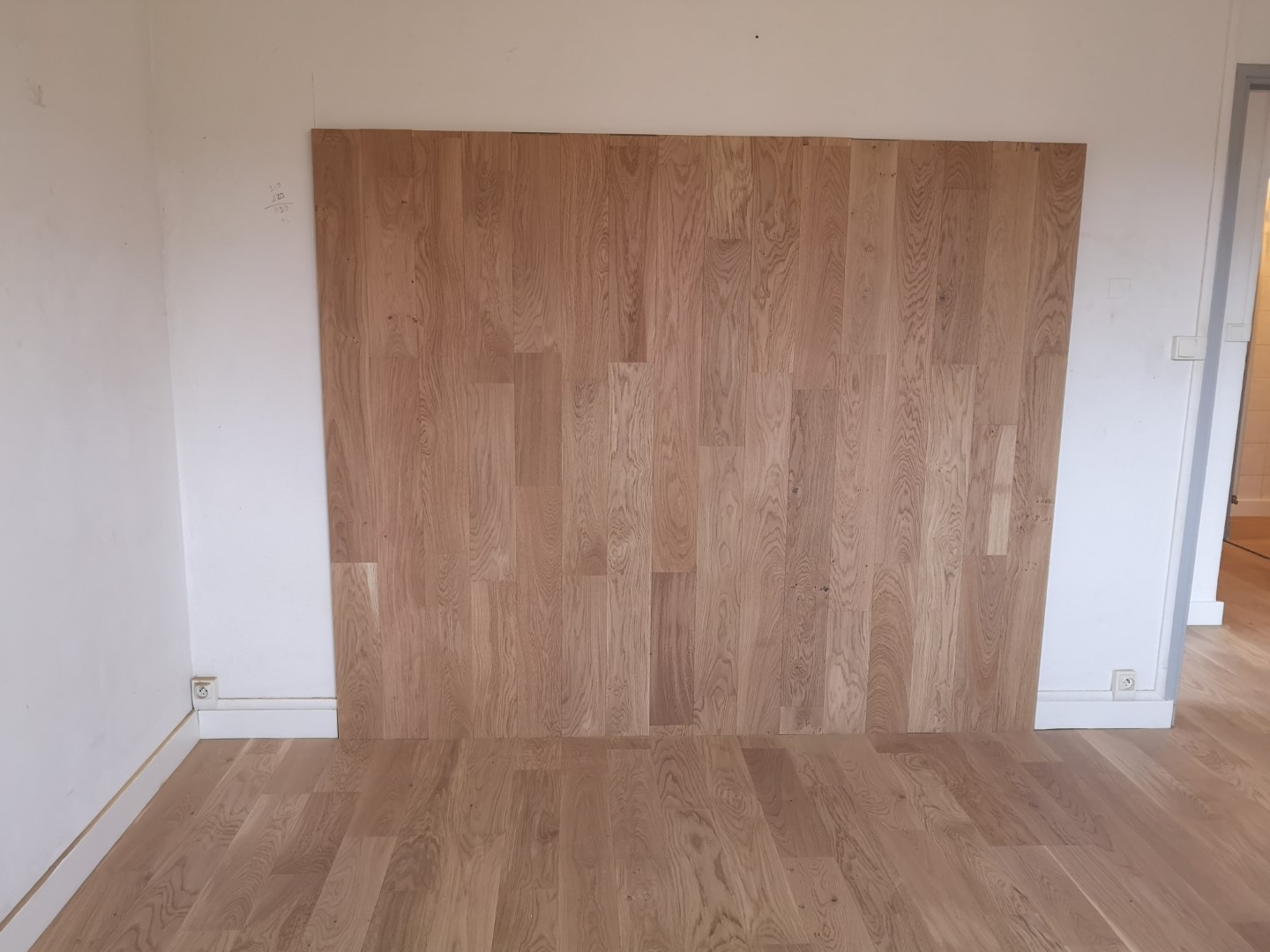 Pose collée d'un parquet contrecollé couleur brut (Leroy-Merlin)