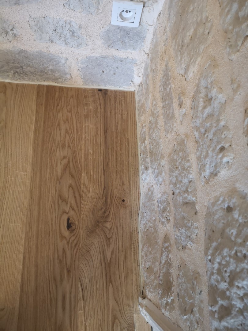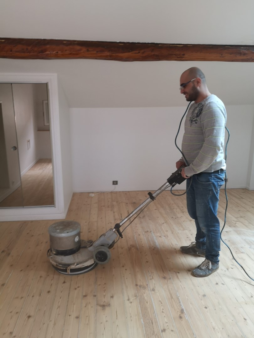 Ponçage et vitrification effet brut (combles aménagées dans un corps de ferme)