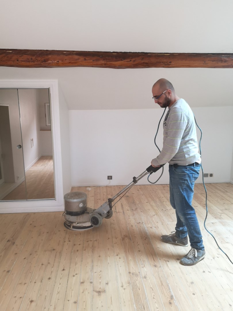 + Ponçage et vitrification vernis satiné de la marque BONA