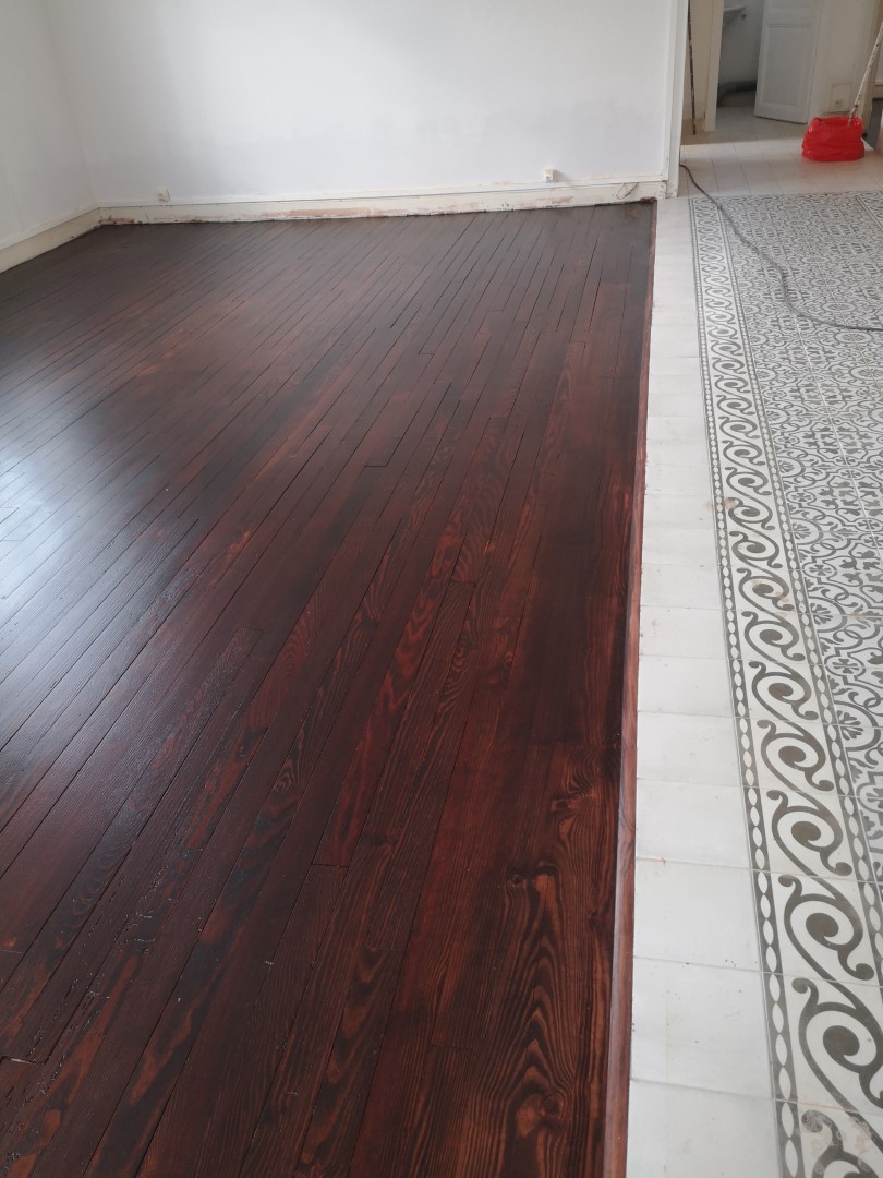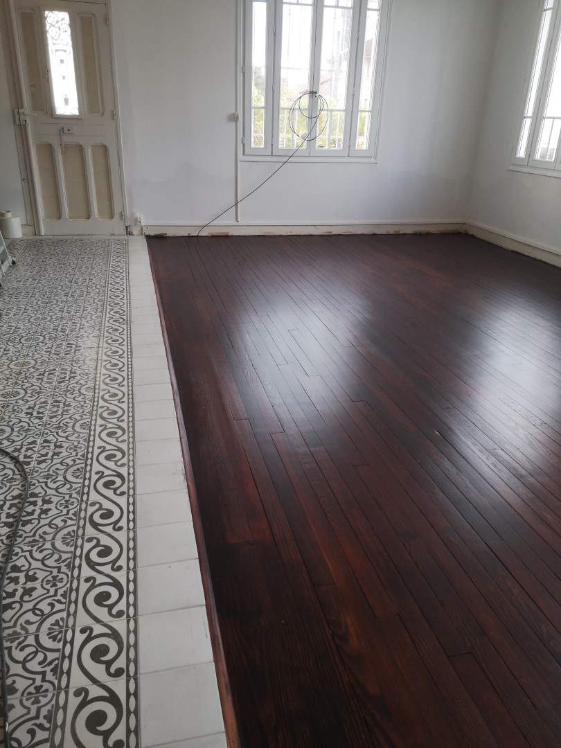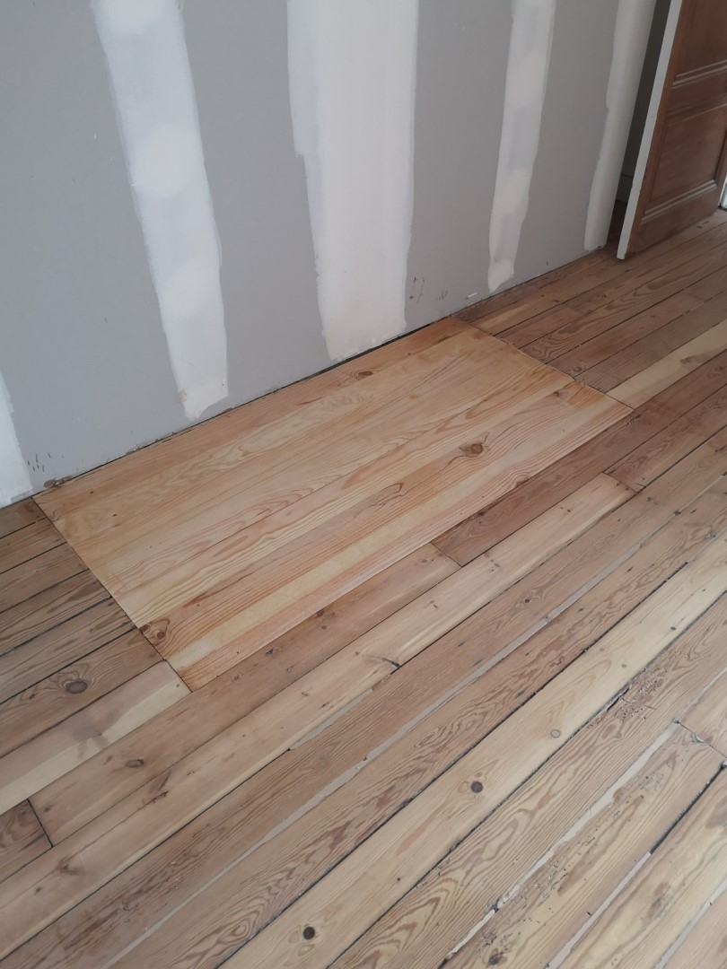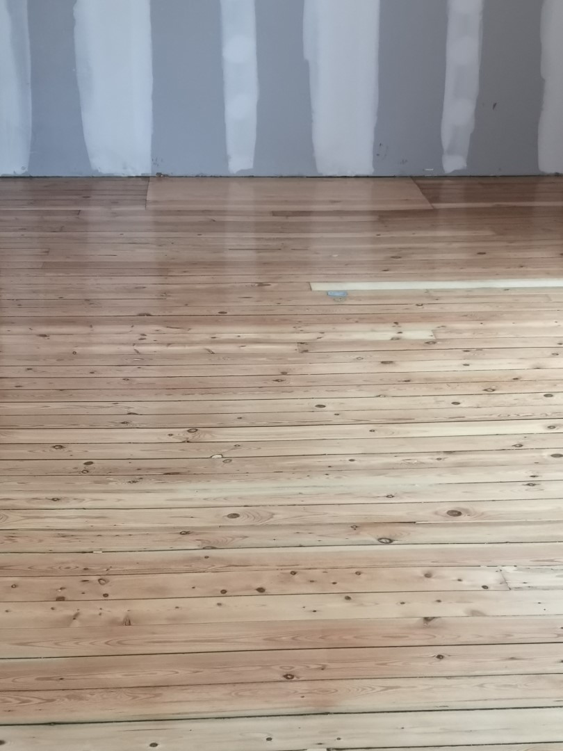 Ponçage d'un parquet en Pichpin , une essence de bois trés courante à Toulouse