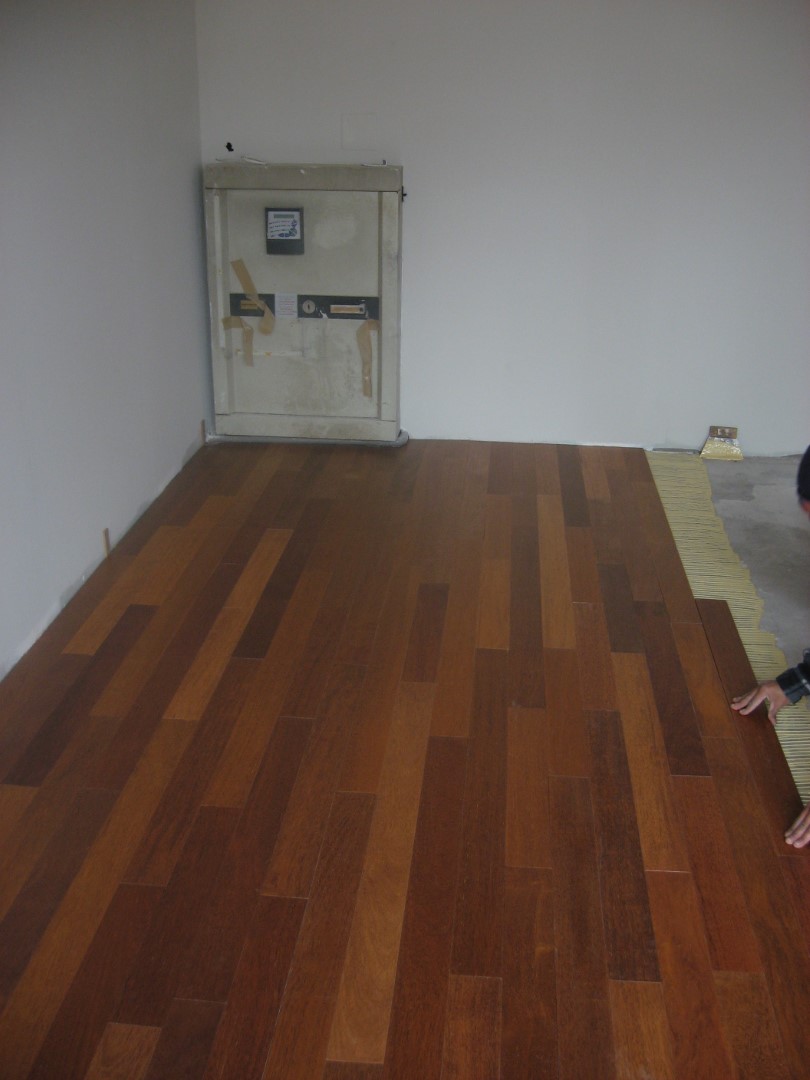 Parquet à clouer massif en Hêtre 23mn brut pour salle de Flamenco à Rangueil